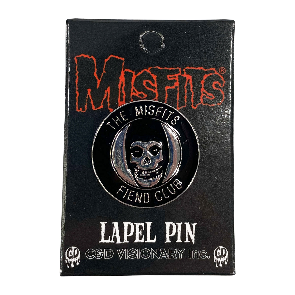 MISFITSのファンのことを“FIENDS”と呼び、現在も続くその集いMISFITSファンクラブ“FIEND CLUB”のロゴがデザインのピンバッジ。