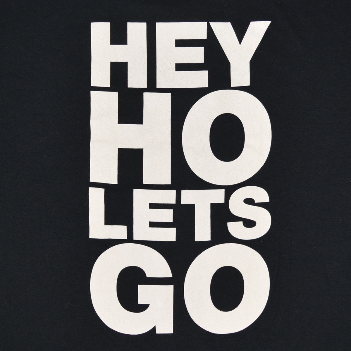 背中には76年リリースの名曲シングル「Blitzkrieg Bop (電撃バップ)」の冒頭の掛け声「Hey Ho Let's Go!」がプリントされています。